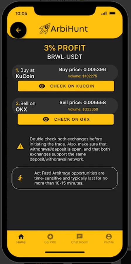 ArbiHunt is a powerful Android app designed for crypto enthusiasts, traders, and investors. It provides you with a comprehensive view of buy and sell prices across multiple cryptocurrency exchanges, allowing you to identify and capitalize on arbitrage opportunities immediately as they happen.