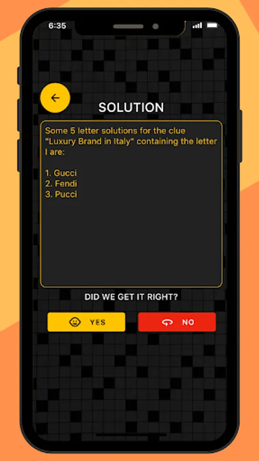 Our app provides users with all of the answers they need for any crossword puzzle quickly and efficiently. All you need to do is provide it with the CLUE and NUMBER OF CHARACTERS, then the app will do all the magic and get you the right answer.