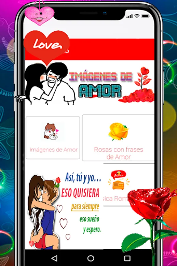 You are looking for an App with Beautiful Love Images, Phrases to dedicate, Love verses, I love your Partner phrases, roses with beautiful love phrases, images of emojis to greet for free.
