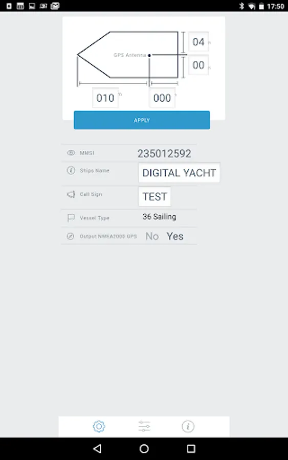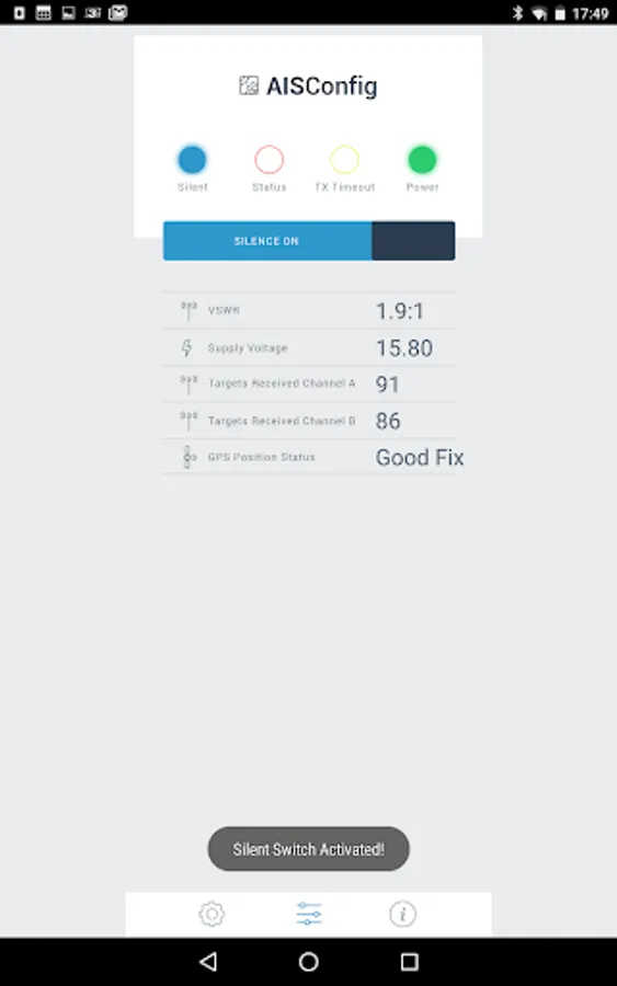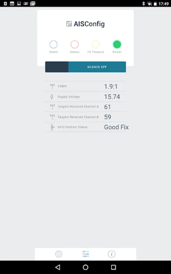 AISConfig allows your mobile Android phone or tablet to wirelessly connect to our latest range of Digital Yacht Wireless Class B AIS Transponders; AIT3000, AIT5000 and Nomad. Once connected, AISConfig can be used to configure the boat details (MMSI number, Boat Name, etc.) in to the transponder and then to monitor the status of the transponder or switch it in ond out of "Silent Mode".