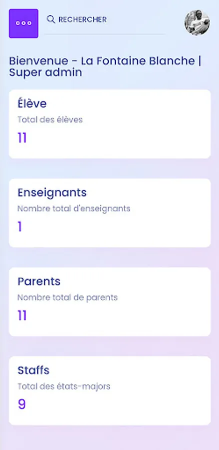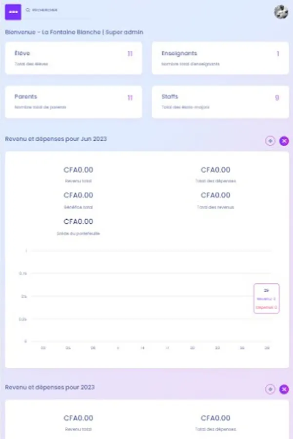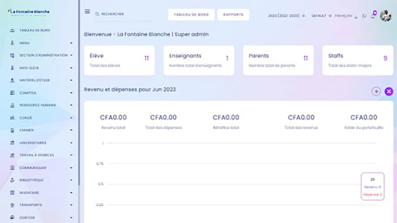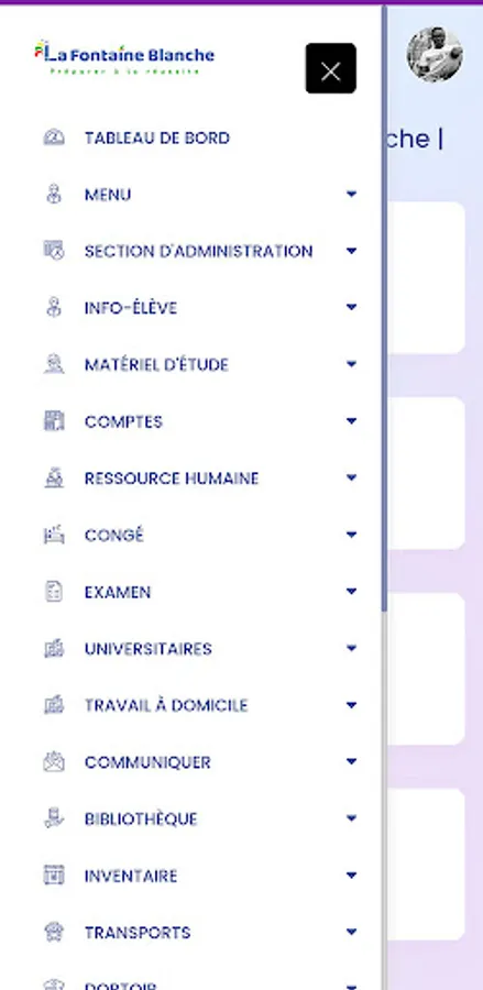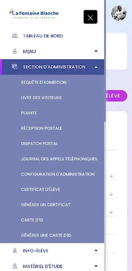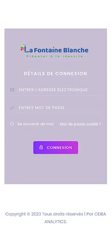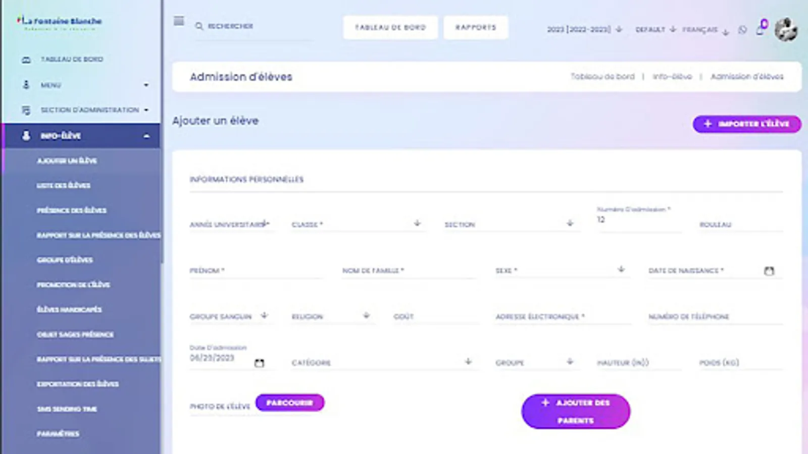 La Fontaine Blanche School Management Application. this Application is reserved for members of the school administration and parents of students.
