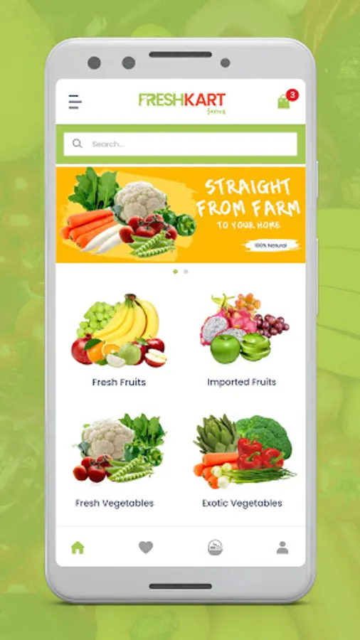 Freshkart offers fresh fruits and vegetables at best prices. You can order over 100 different varieties of fruits and vegetables sourced directly from farmers and delivered to your doorstep everyday early morning.