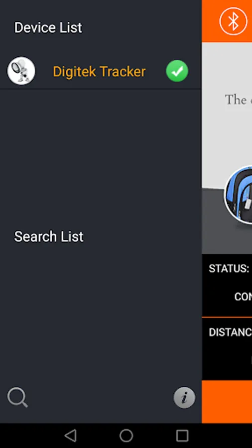 So the main function of this app is to find objects that are with Digitek Tracker. Tap the icon in the bottom of the screen, the Digitek Tracker will alert with sound to inform you where to find your objects.