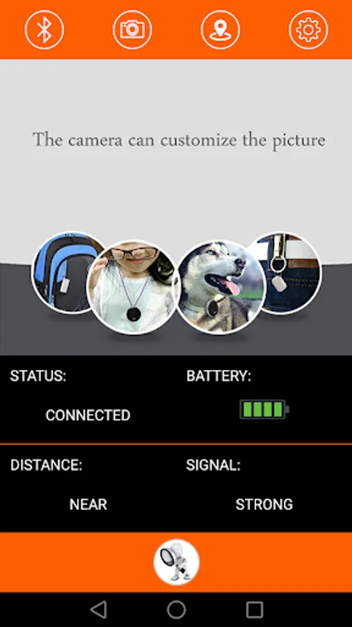 Also, the app can be used as Remote Shutter. Tap the camera icon to launch camera in the app. Press the button on the Digitek Tracker to trigger the phone take picture or video.