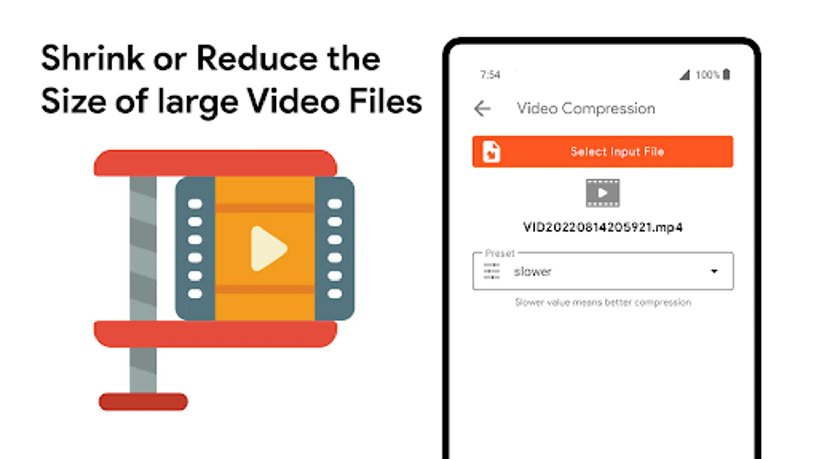 🎬 Video Compression :- Compress the video file size with predefined presets. The original File size, Memory & Quality of the Video can be significantly reduced with help of this feature.