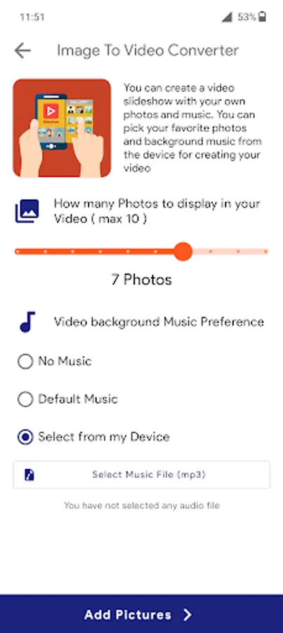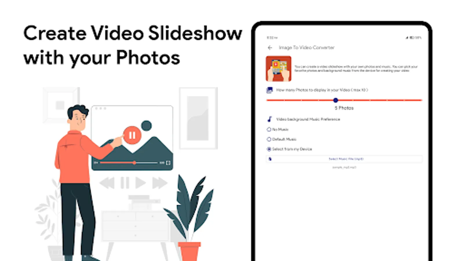 🖼 Image to Video :- Create a beautiful video slideshow with a collection of pictures, you can also set your own background music for the slideshow.