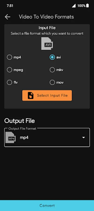• AVI to MP4, MPEG, MKV, FLV, MOV