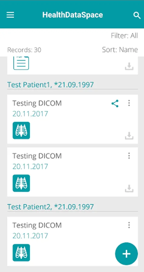 Patients of all participating radiological institutions receive a HealthDataSpace access code, e.g. printed on the report or the patient CD. This allows you to easily view your medical images and report in HealthDataSpace. To do this, either scan the printed QR code or enter your access code in the HealthDataSpace App. You can manually download your medical data from HealthDataSpace at any time. X-ray images of patientsCDs or digitized documents can be manually uploaded to HealthDataSpace.