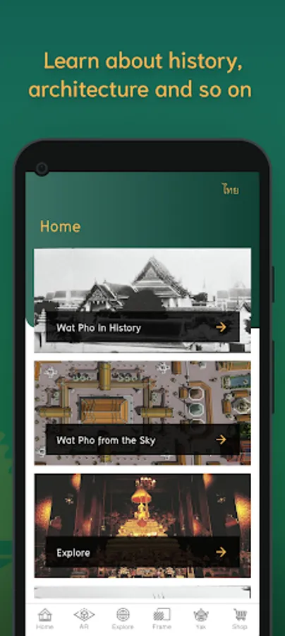 Enjoy exploring Wat Pho with the “Insight Wat Pho” app that turns your mobile phone into your travel buddy guiding you around the entire area of Wat Pho. Learn about the history, architecture, arts and crafts, and beliefs in Buddhism and Thai culture through audio narration, descriptions, pictures, and augmented reality (AR) technology. See the plan of Wat Pho in a different view never seen before. Reminisce about the place through vintage photos. Catch “Yak Wat Pho.” Solve the riddle poems inscribed on the Epigraphic Archives of Wat Pho which UNESCO registered as the Memory of the World. Available on smart phones and tablets, both iOS and Android. Suitable for tourists, students, and the general public. Supported by Wat Pho, Chulalongkorn University, and the National Innovation Agency (Public Organization).