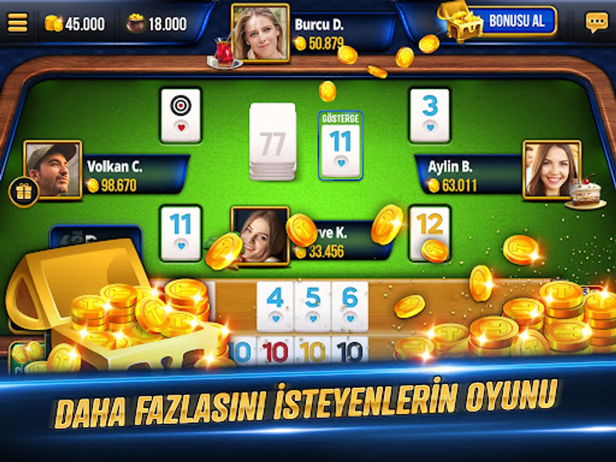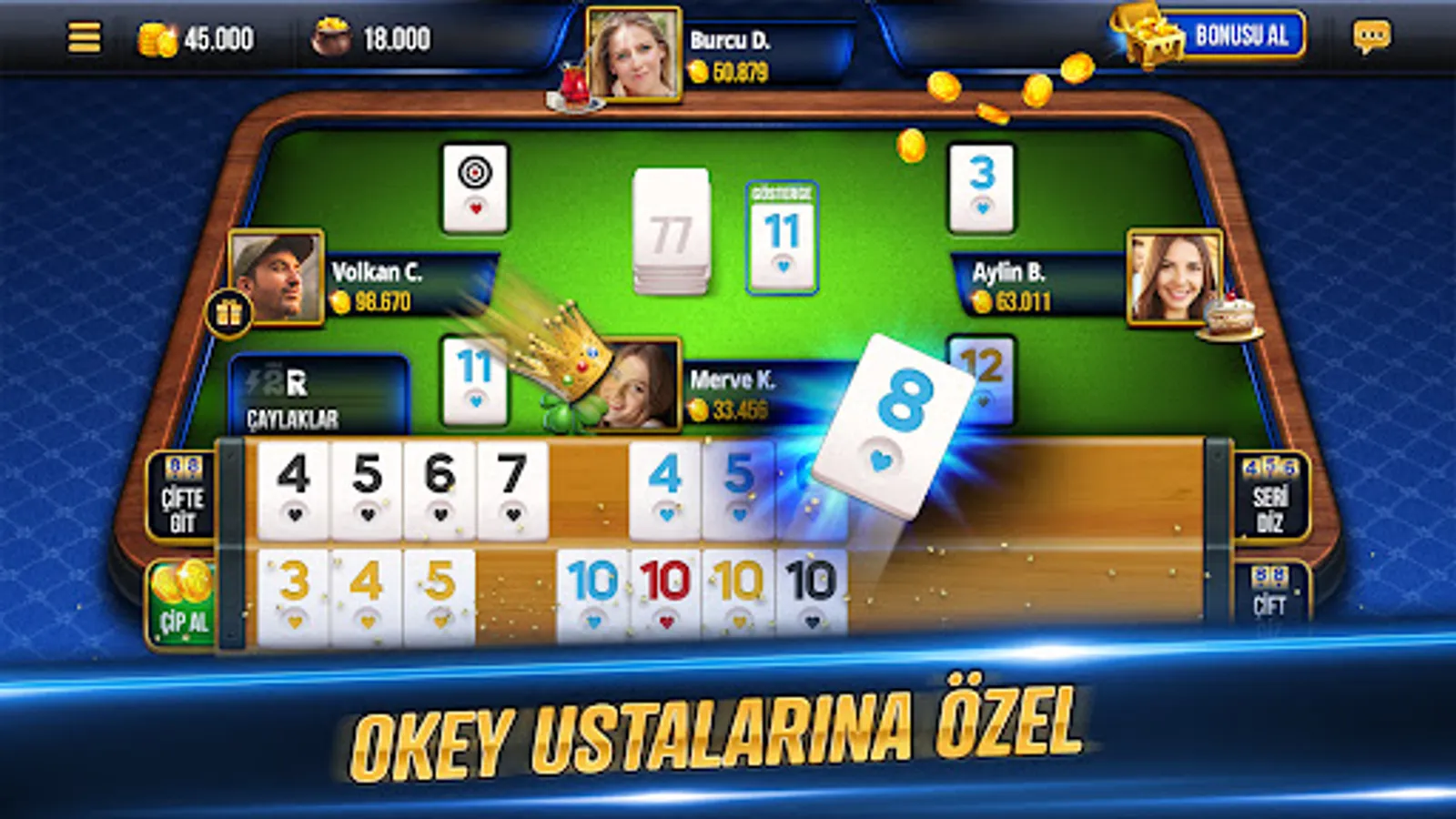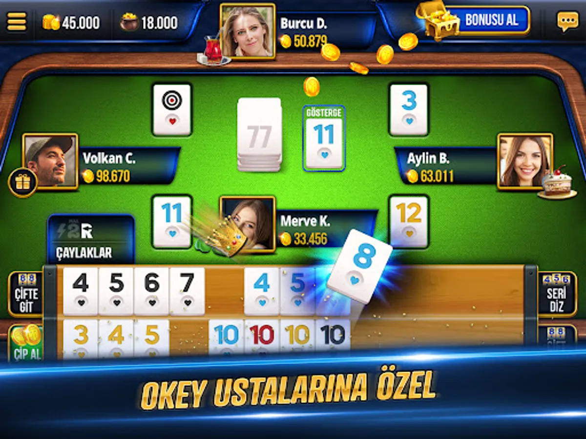 You can chose to play in tables for 2-3-4 persons or you can chose from Fast Table, Optional Tile and Revenge options to increase the joy. You have the chance to win Tekel Okey Bonus every day as well as a welcome gift !