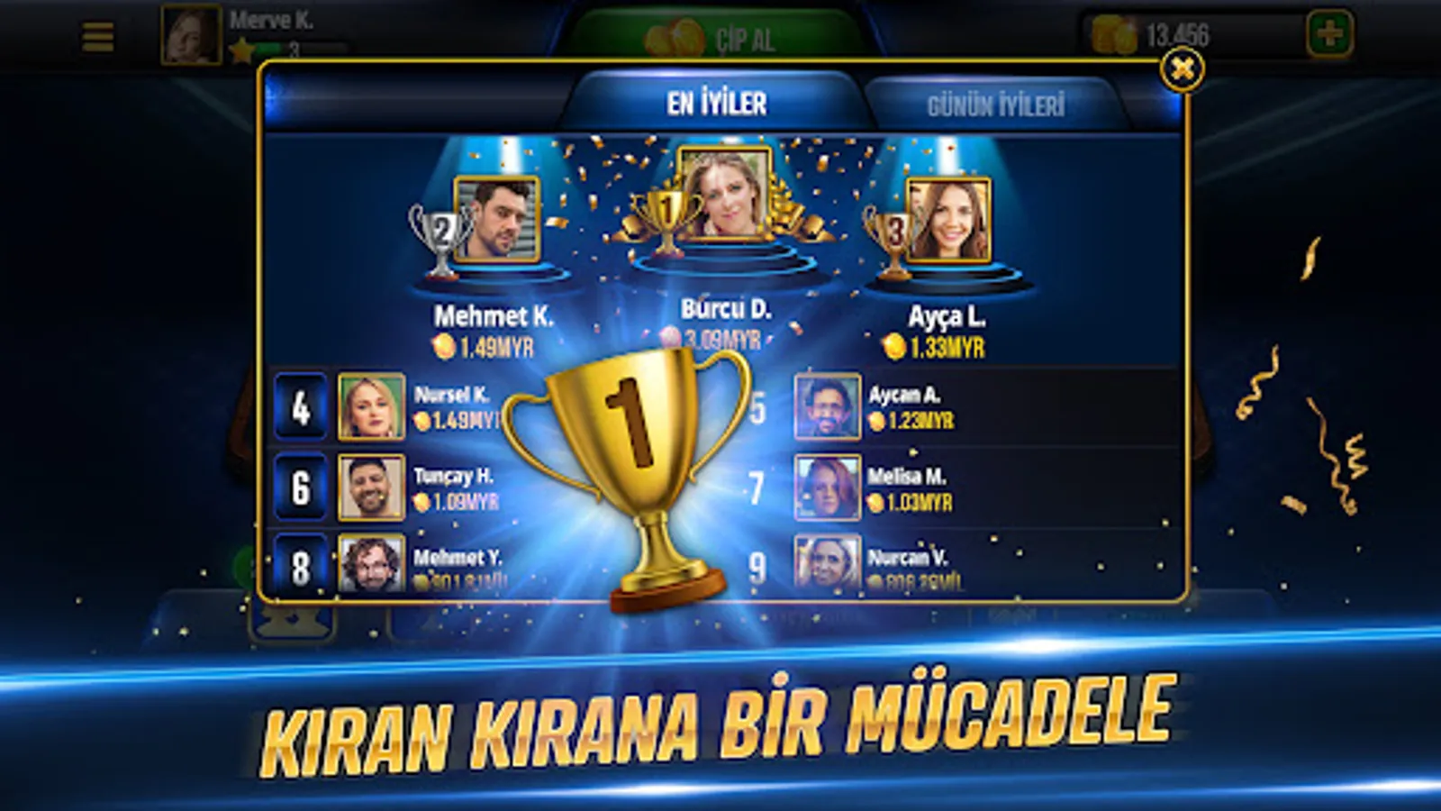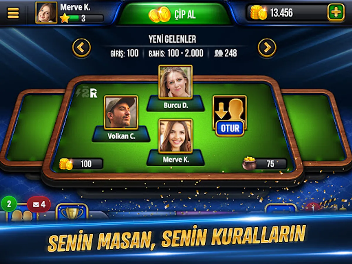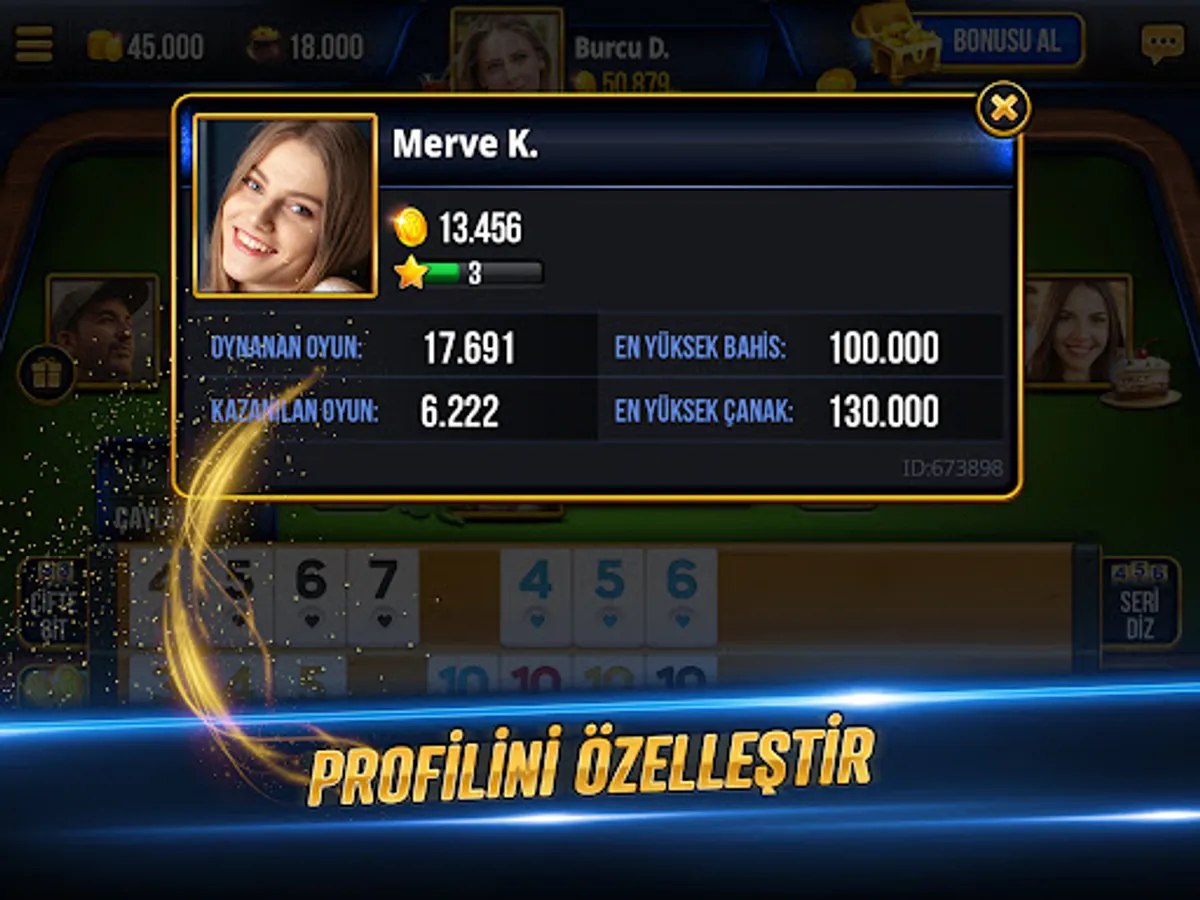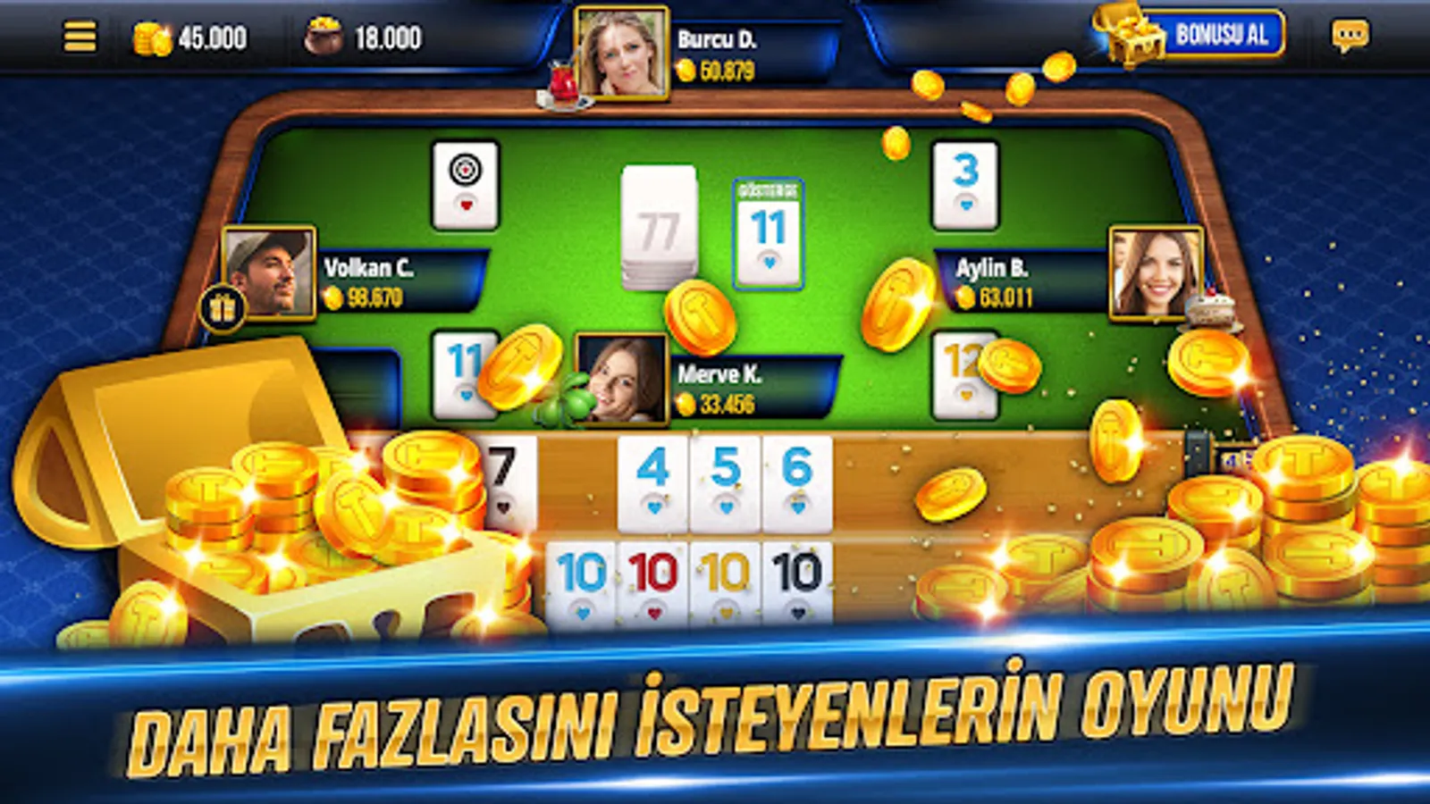 You can chose to play in tables for 2-3-4 persons or you can chose from Fast Table, Optional Tile and Revenge options to increase the joy. You have the chance to win Tekel Okey Bonus every day as well as a welcome gift !