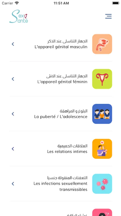 Le but de l’application est l’information l’éducation et la sensibilisation autour de certains thèmes de santé sexuelle et reproductive à savoir : la puberté, l’adolescence, la grossesse, les infections sexuellement transmissibles, la contraception et d’autres thèmes.....