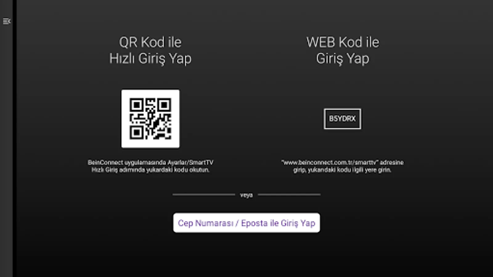 beIN CONNECT users can access the content they have the right to watch by logging into the application with the mobile phone number and password they used for their memberships on the website (beinconnect.com.tr).