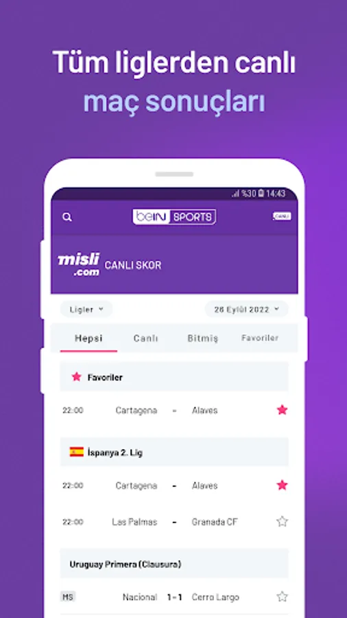 With the beIN Sports TR Android application, you can follow up-to-date football news and football videos, you can watch Trendyol Super League, English Premier League, German Bundesliga, French Ligue 1, Türkiye Sigorta Basketball Super League match highlights and goals on the beIN SPORTS TR Android application right after the match is over.