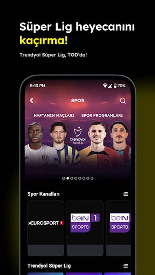 Wherever you are, live sports excitement and entertainment are always with you. Trendyol Super League, English Premier League, Bundesliga, French Ligue 1, Turkey Insurance Basketball Super League and much more live match broadcasts are on TOD with high image quality. If you subscribe to the package of the league you want to watch, you can watch the matches live without paying any additional fee. All you have to do is install the app and log in.