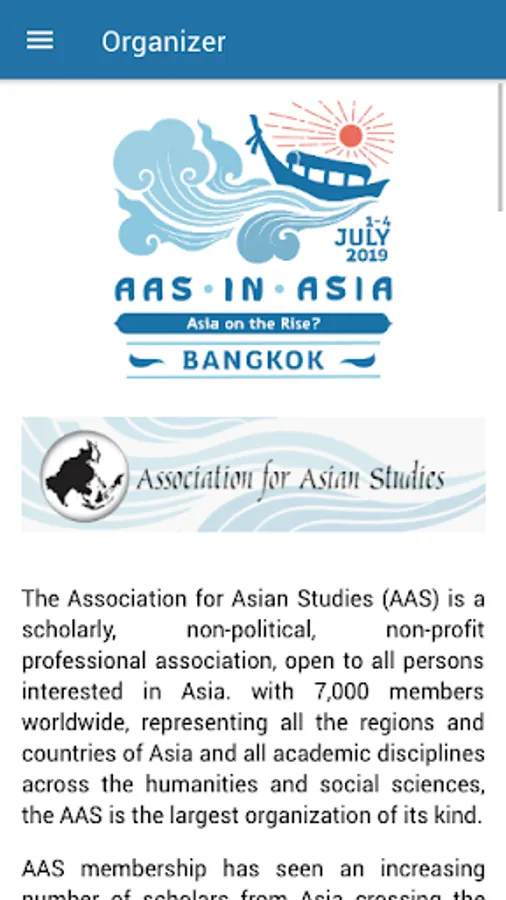 The 2019 AAS-in-ASIA Mobile App gives you an insider's overview of the entire experience - every panel and event - letting you highlight the ones you really can't miss and create an itinerary tailored specifically to your interests and schedule. It helps you browse and search the meeting by day, presenter, or session type, and will help you navigate the entire landscape so you don't miss a single thing.