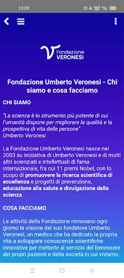 FUV Eventi also represents a dialogue tool: through the app it will be possible to receive news, multimedia materials and updates on the results of scientific research; it will also be possible to interact and discuss with the staff of the Foundation and with other registered people, thus creating a solid and active community!