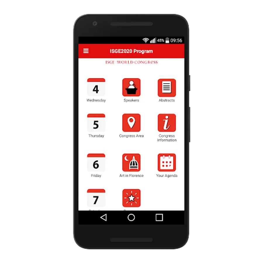 The App contains also news and information on the ISGE World Congress taking place in Florence every 2 years.
