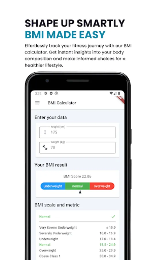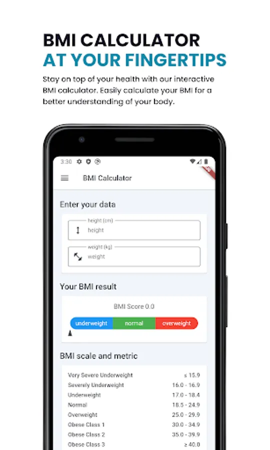 Stay on top of your health with our interactive BMI calculator. Easily calculate your BMI for a better understanding of your body.