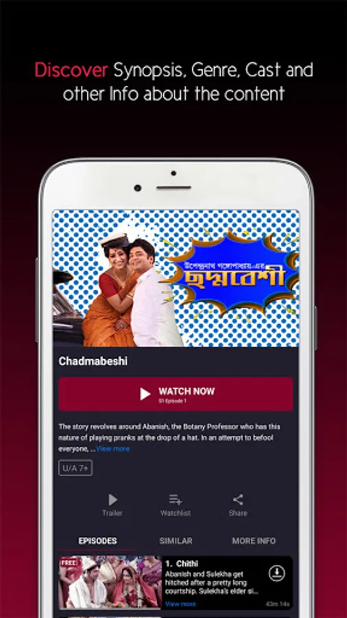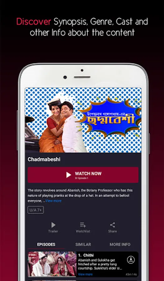 Watch a gamut of Bengali Movies, Original TV shows, Short films, Musical programmes and more, anytime, based on your preference.