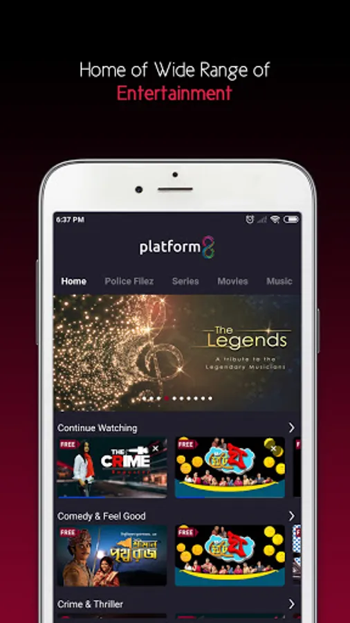 An on-demand video platform for viewers all across the globe. A freemium-subscription based model containing over 400 hours of recreational video content added at regular intervals. A pioneer in bringing Bengali family-entertainment on the OTT platform. Platform 8 comes with a plethora of options covering short films, TV series, drama, thrillers, classic movies, musical programmes and more. It comes from the house of Aakash Aath and Channel Eight - which has been immensely popular among the Bengali audience for decades.