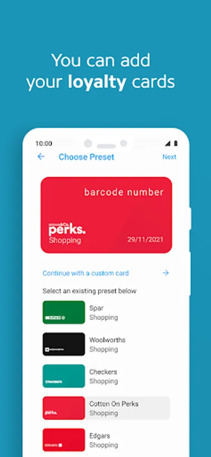 We’ve made it possible to choose from an ever expanding range of brands or by creating cards of your own. If you have any cards you would love to see, feel free to let us know by using the 'Contact Us' feature in the app.