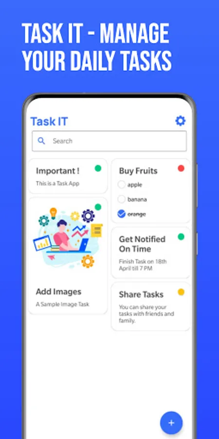 This "TaskIT" gives users more flexibility to build strong task management. Increases their work productivity, improve time management. Here user can keep its record as a backup or at the same time can delete it if not required.