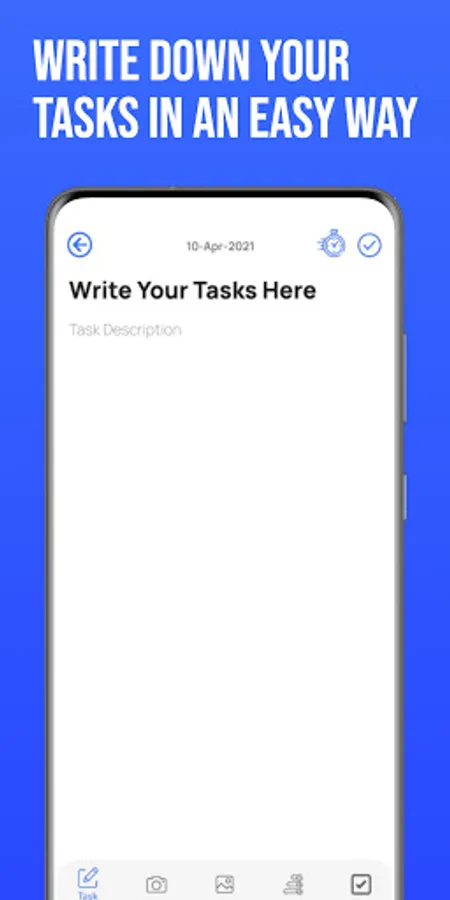 a) Description mode ( default ) where you can write the task in detail. Example: Task tile - "Employee Review" Description could be " Sales team year assessment to be finished along with Head HR and final report to submitted"