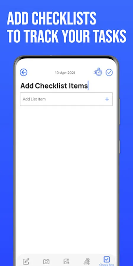 b) Checklist Mode - You can choose this mode especially in the case when you are going to buy Groceries, Medicine, etc from the market - Example - Task Tile " Groceries from Amazon" Select checklist mode you can write items separately like Tea, Sugar, Pulses, etc. and you can check once the item is purchased.