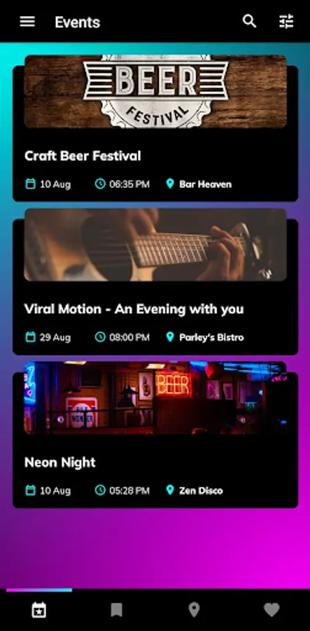 Follow a customized list of upcoming or ongoing events in many different categories. Expand to view detailed information and make reservations for you and your friends. Attend events as valued guests and supporters of local businesses, rate the organization and service and become VIP members with benefits.