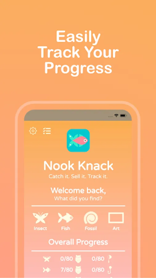 Nook Knack is an unofficial progress tracker for Animal Crossing New Horizons. Check prices for Fish, Insects, Fossils, and Art. Track caught or donated progress! Not sure which fish will sell for more bells? Just click or search for your fish to check quickly. Especially handy if you find yourself on a remote island with limited pocket space!