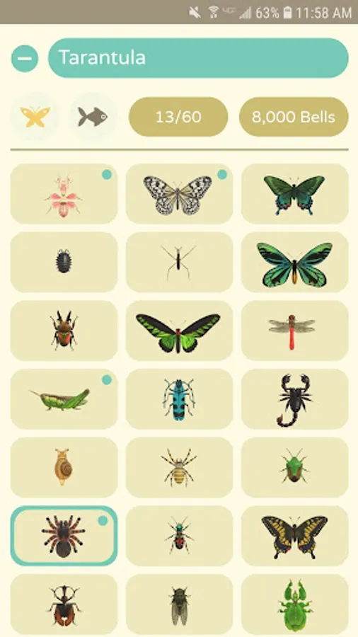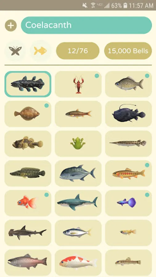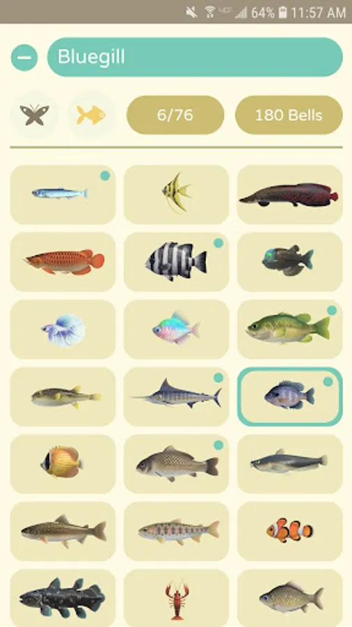 • Info cards for Fish and Insects which show seasonality, spawn locations, and time to find
