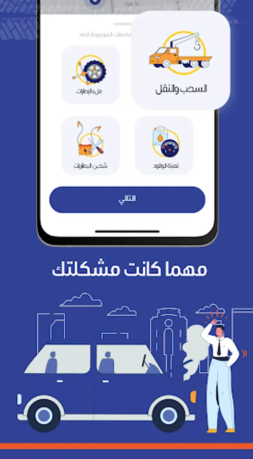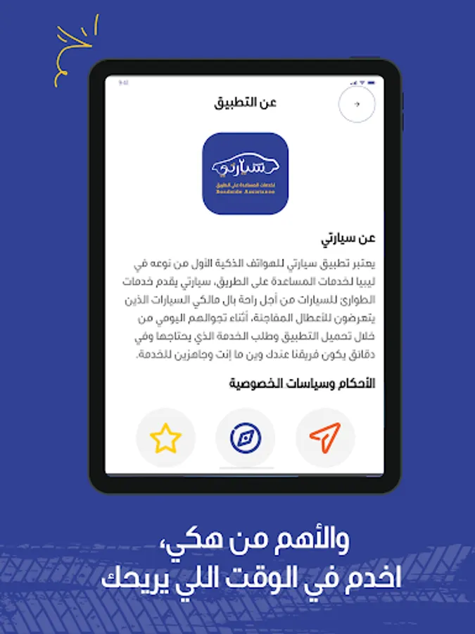 My Sayarati application for smart phones is the first of its kind in Libya for roadside assistance services. My Sayarati provides emergency services for cars for the peace of mind of car owners who are exposed to sudden breakdowns, during their daily roaming by downloading the application and requesting the service they need, and in minutes our team will be with you wherever you are. They are ready to serve whether you need a tire change and filling, fuel filling, towing and hauling services or even unlocking locks.