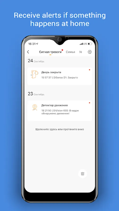 Get event notifications right in the app to always be aware of the data received from the devices.
