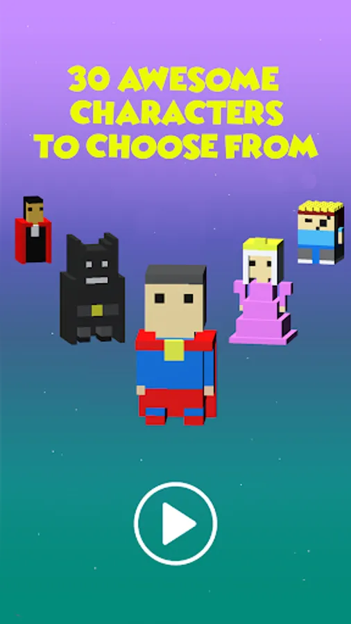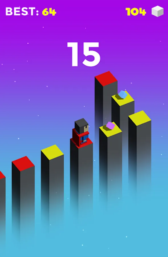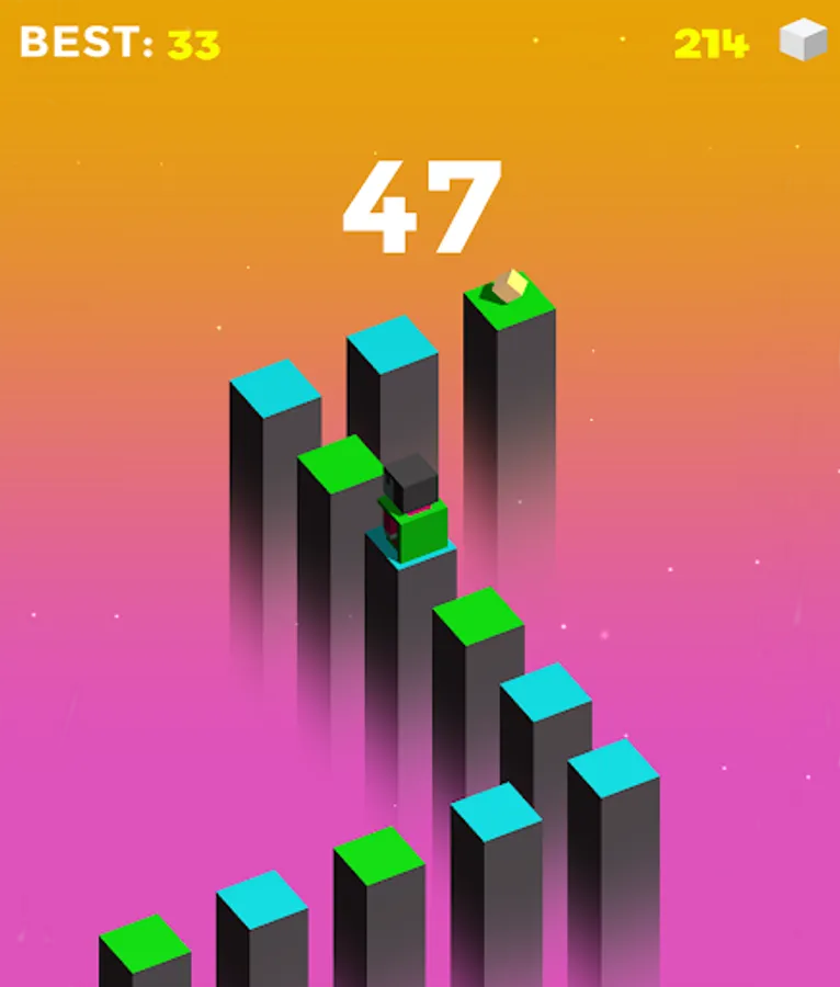 Jump Cube is an addictive game, tap the right or left side of the screen with the matching colour of the path. Try to get as far away as possible. Collect gems to unlock awesome new characters.