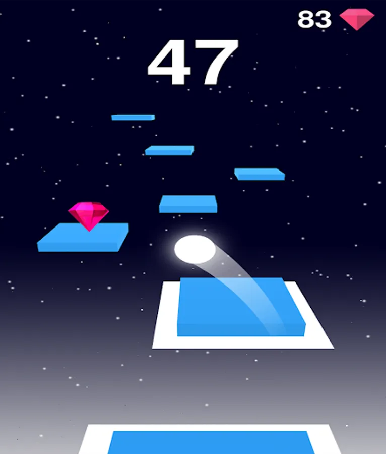 Swipe your finger on the screen and jump on the blocks to hop around in space but make sure you don't fall off the edge. How far can you hop before you fall off the edge?