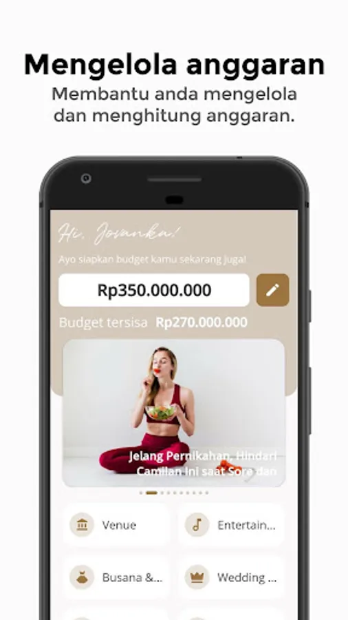 Yuk coba download NikahKuy disini kalian dikasih rekomendasi loh apa aja yang harus disiapin, kalian juga bisa catetin anggaran kalian plus kalian bisa catetin vendor-vendor yang kalian suka!