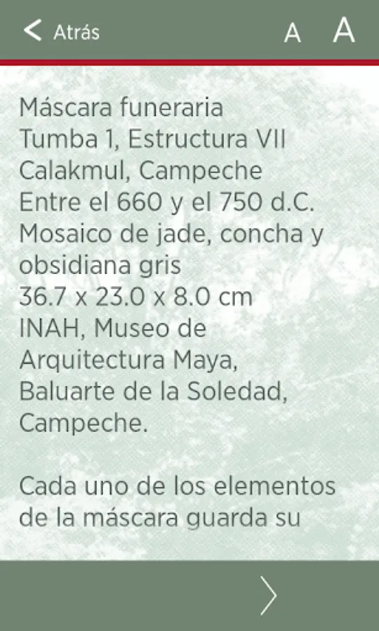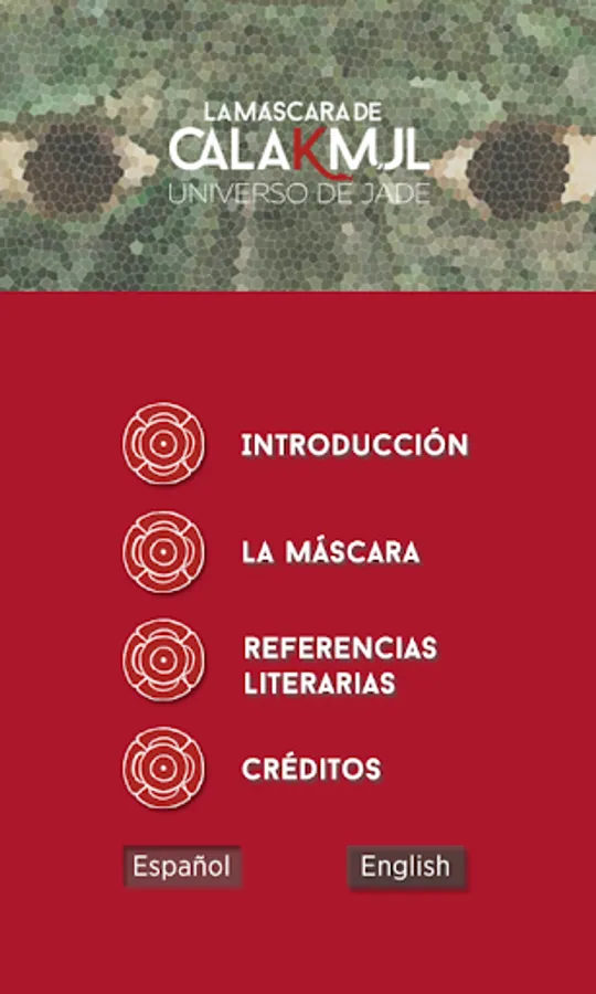 This app is from the temporary exhibition "The Mask of Calakmul, A Jade Universe", at the National Museum of Anthropology in Mexico City starting on August 26, 2015, presented by the Instituto Nacional de Antropología e Historia as the first display in a series called One Piece, One Culture.