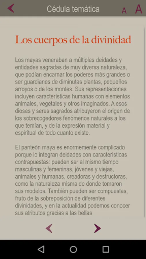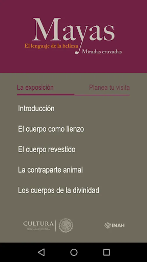 This application provides information about the Mayan art and ideological values embodied in it, focusing particularly on the representations of a predominant element in his art: the body, which idealized revealing his own conception of man and his paradigms of beauty.