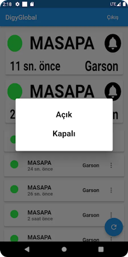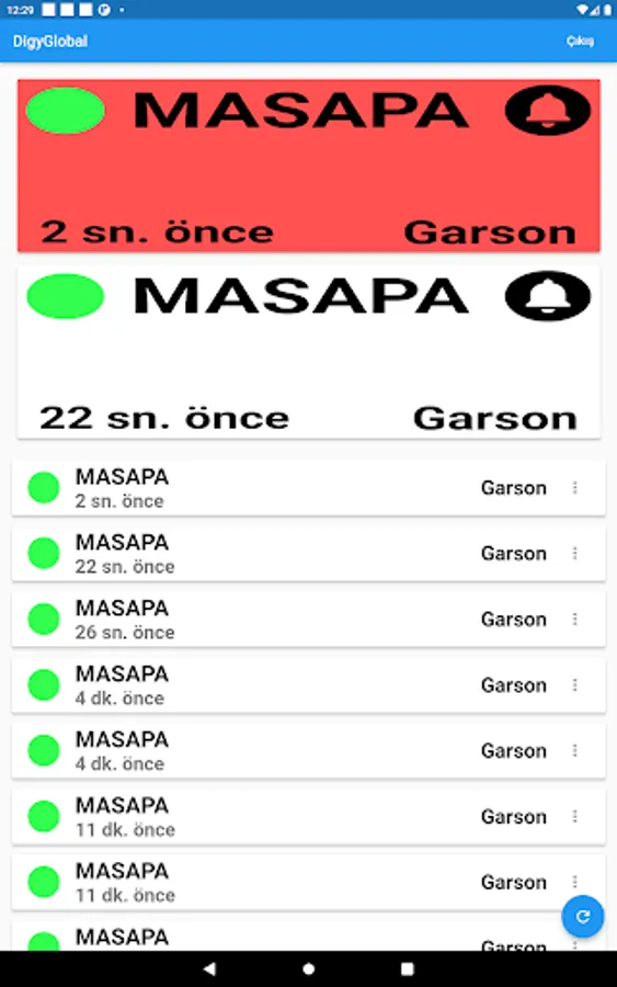 DigyCall, hotel, restaurant, buffet, etc. It provides an easy call and management system between customers and waiters in places. It uses Google Cloud messaging service. When the customer presses the button to place an order with the call button, the application detects the call and displays it on the screen. Thus, the customer and the waiters provide fast communication.