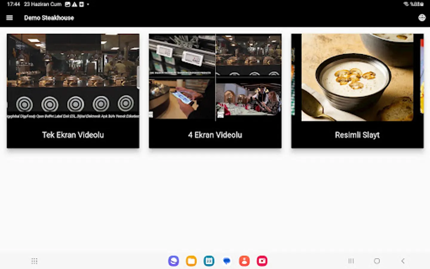 With DigyKiosk, it carries the kiosk management to the mobile device. Single-screen video, multi-screen video playback, motion picture slide, etc. displays such as