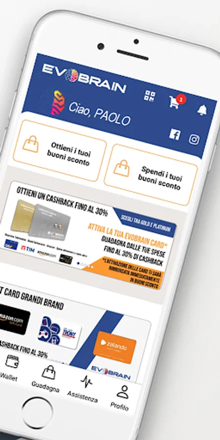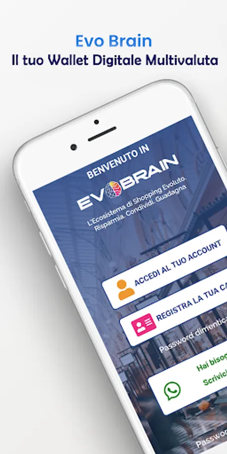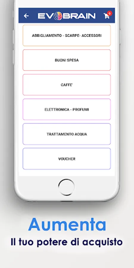 Do you love shopping? But you don't have enough budget to buy stuff or items. Evo Brain is the Evolved Shopping Ecosystem app, That enables you to increase your buying power and provides your Crypto Wallet in Italy. Legit payment system, based on two types of electric credits: EVO and EVB. Find affiliated companies nearest to you with the geolocation function. Pay in-store directly with your digital wallet with scan QR Code or with your personal EvoBrain Card. So, what are you looking for in the app? Our app has the best deal of products in the "online shopping" section of the e-commerce app. As a User of our Italy shopping, you will get exclusive prices and EVB discount coupons.