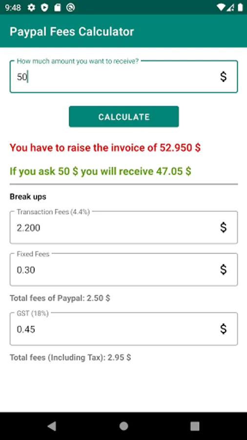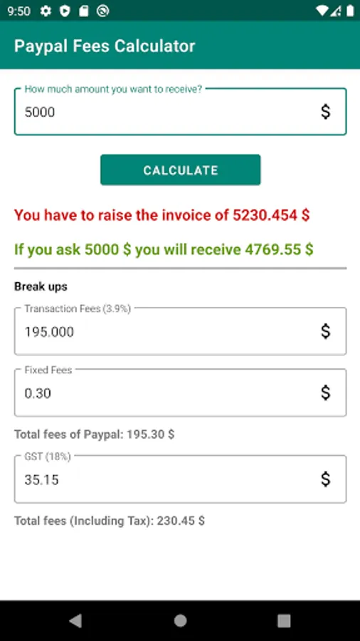 To avoid surprises after receiving amount due to different fees taken by Paypal and to know the actual amount to be invoiced to the customer, we have automated the calculation part, so after entering the amount user will get to know the paypal fees, amount breakups and the amount to be asked to client or the receivable amount.