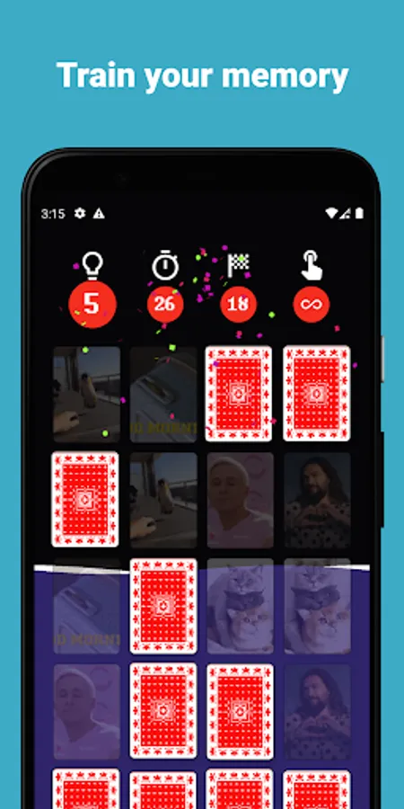 Challenge yourself with guessing and solving animated card pairs that help you get smarter and improve your attention!