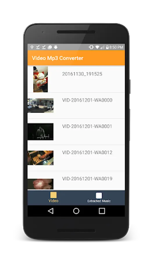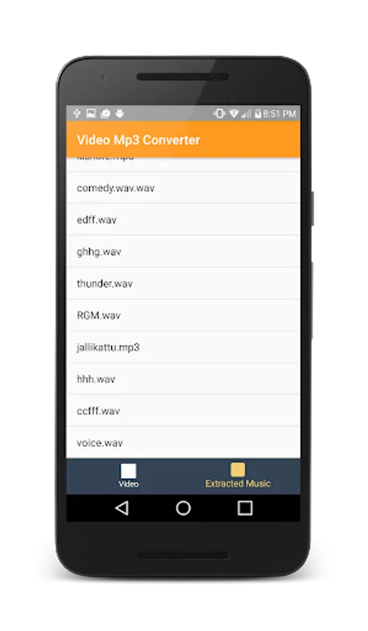 The Application also supports FLV,WMV and other popular formats for Audio extraction process.Based on the video file size the video converter will take time. All the video files are stored in the memory card in the folder named videotomusic.