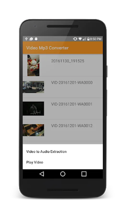 The Video to Music Converter application will scan the memory card and will list of files that can be converted to music file format.