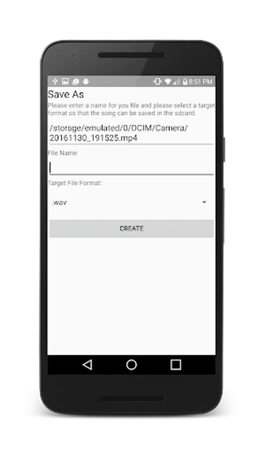 2) Give a filename and the target formart that the music file you want