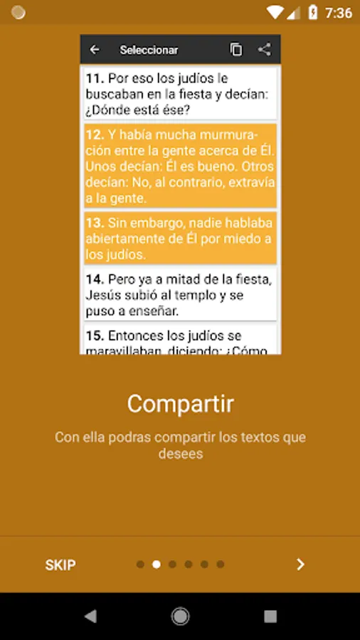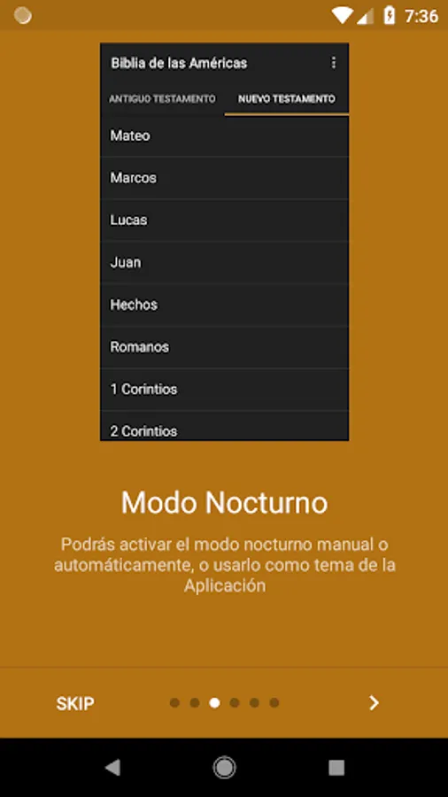- Night mode, so you continue reading the Word of God in the night; You can activate it manually, or select the time window in which you want this enabled