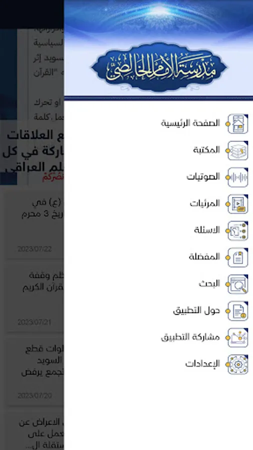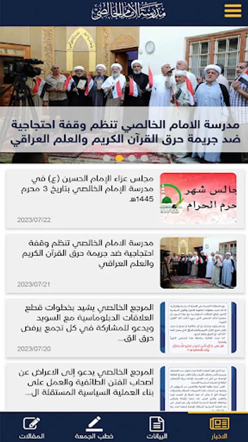 The reference and the school of Imam al-Khalisi go back to the beginning of the twentieth century, when the Mujahid Imam Sheikh Muhammad Mahdi bin Muhammad Hussein bin Aziz al-Khalisi (Jerusalem) in the year 1330 AH / 1911 AD established a large school in the holy city of Kadhimiya, which he called the Zahraa School, in which jurisprudence and religious sciences were taught on a scientific method. Follows the principle of modernity to make a radical change in religious and jurisprudential education, and to be a religious scientific university; Scholars who combine religious sciences and modern sciences graduate from it, and today it is known as the School of Imam al-Khalisi al-Kabir, after him. The Imam al-Khalisi school also adopts a legitimate political approach based on the principle of not separating religion from politics, the principle of the independence of Islamic countries, the arbitration of Islamic law in the life of the nation, and the preservation of Iraq's Islamic and national identity.