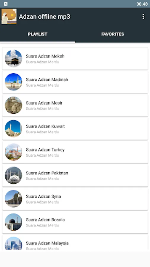 Collection of Melodious Azan Sounds Offline Mp3 is an application that contains the sound of the call to prayer from various countries.